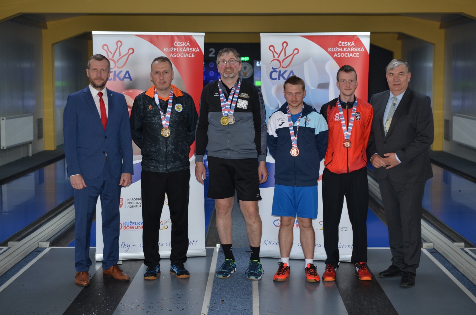 Na fotce zleva: Miloš Novák (Starosta Dačic), Jaroslav Hažva (KK Slavoj Praha), Milan Svoboda (CB Dobřany), Michal Pytlík (TJ Spartak Přerov), Jan Endršt (TJ Sokol Duchcov), Jiří Jančálek ( prezident ČKA )